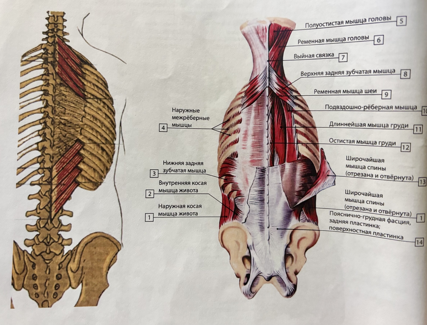 - Способствует разгибанию позвоночника (двустороннее сокращение)