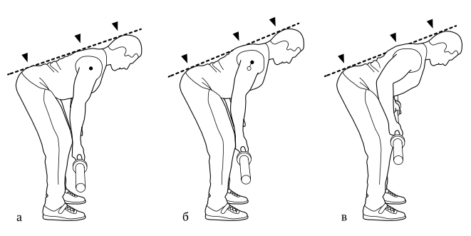 Отягощение не выше 10 ПМ, категорически запрещается выполнять подходы до отказа. В упражнении необходимо сосредоточится на сохранении нейтрального положения позвоночника и угла наклона туловища.